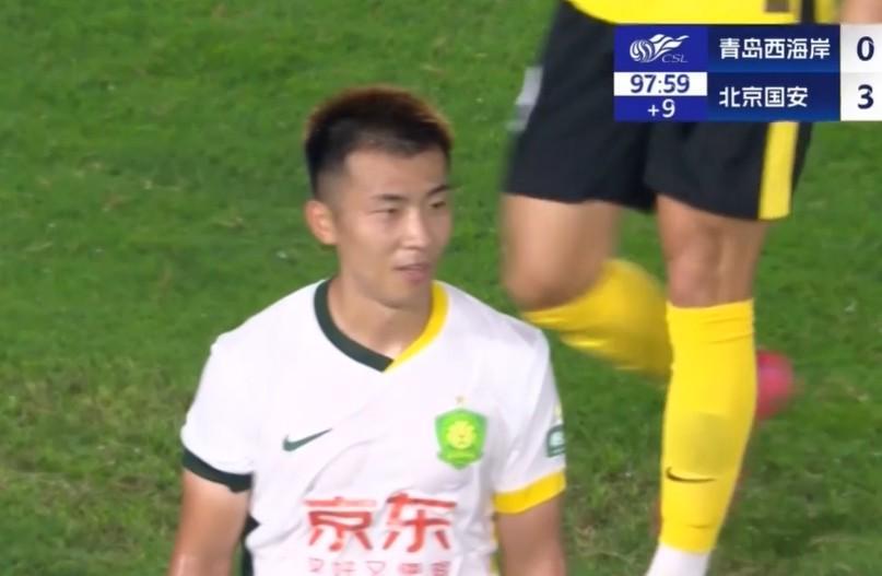 比赛第72分钟,何宇鹏替补出场。全场伤停补时阶段,国安队在禁区内出现配合失误,何宇鹏犯规送点。